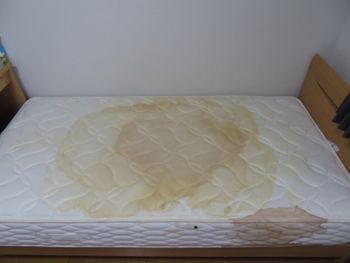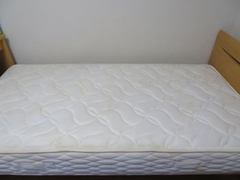 作業前は、マットレス全体にシミ。買い替えの提案をするか悩みました。