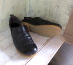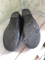 ■修理内容:同じくごつい感じにならないピラミッドパターンの滑り止めを加工します。生ゴム含有 ピラミッドBLK ハーフソール + カカトの補強です。