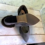 ■修理内容:ア テストーニのエレガントなショートブーツです。軽く冬仕様にすべく加工します。あまりゴツくないピラミッドのBLKでハーフソール加工しました。