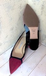 ヒールの巻革のダメージが大きいですが、ヴィトンのエピ風なシボが入った革なので今回は接着と補色でしのいで、次回交換時にスタックか濃いめのスムース革での巻革交換をお勧めします。残念ながら同じ革は用意できません。リフト交換¥1000 + tax ,
