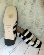 ヒールのスタックの巻き革が 杉織り柄の凝った意匠になっています。標準で付いている生成り色のリフトが柔らかい素材の所為もあり、路面からの衝撃がヒール上部に伝わったのでしょうか 下端の巻き革が欠落してしまいました。スタックを同じ意匠で交換する場合は¥6000ほどですが、今回は部分的継ぎ足しでしのぐ事になりました。リフトはこの大きさなら、上記の理由で柔らかい素材はお勧めできません。