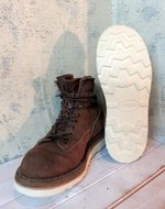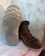 ■修理内容:標準で付いている#4014が減りが早いということで(靴のフィッテイングで変わります)ちょっと変わったソールをお勧めしました。 #4014と同様のパターンですが、モルフレックスという部材で軽く耐摩耗性が高い#8377でオールソールしました。