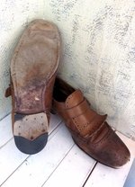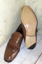 ソールに付いていた ecco の金物が意外と良いものだったので赤のペイントを入れてバフ掛けして移植しました。,