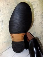 ■左足の薬指?あたりに力が入っているようで、穴が開いている部分に30ミリの革パッチを当ててから ビブラムの#2027のダークブラウンでハーフソール加工しました。Vibram #2027 DBR ¥3000 + tax,
