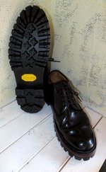 ■部分的に都合6箇所同系統の部材で補填してフラットにベースを作ってから スニーカー用のヘリンボーン柄の専用ソールで加工しました。ヘリンボーン柄スニーカーソール BLK・DBR・WH の3色のBLK をチョイス。スニーカーソール BLK ¥6500