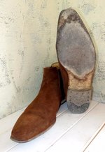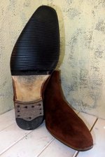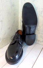 ■バブルを経験した世代だと革底をそのまま履く醍醐味、滑ったり、穴が空いたり、水がしみたりしつつも、小砂利が靴底に食い込む感触を楽しむような履き方をしたものでした。最近はそれらを嫌って履き出す前にプロテクトする方が主流になっています。とりあえず交換可能なカカトは減ってからにして、前半分だけをプロテクトします。