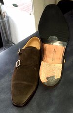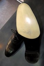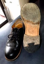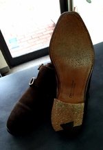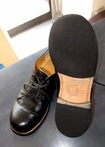 ■レペットは薄いレザーソールが身上ではありますが、足が疲れるという方もおり、いつもの厚さ1ミリの薄いUSシートではなく、ビブラムの#7673という厚さ1.8ミリの合成ゴムで、ハーフソール加工をします。+ TAX,