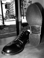 ■ソールはこんなかんじですが、ゴムも革も経年硬化しているはずなので、ハーフソールと化粧カカトを交換、加工します。英国フィリップス社のハーフソールと化粧カカト、セットで加工します。 ¥3800 + TAX,