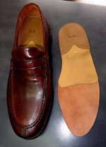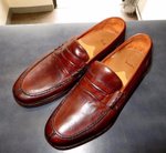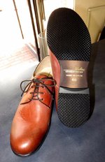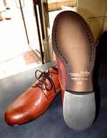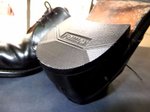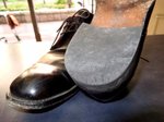 ■ここ数年、つま先にスティールプレートを堀込みで取付けるのが地味に流行っています。ハードな革底は新しいうちは、特に返りが固くてつま先を削ってしまう事が多いので、その予防策と言う事と プレートのルックスが良いというのもあります。少し履いてしまっていますが、面一に加工するために革包丁で切り込まなければ行けないので、小砂利が喰い込む前にお持ちください。左右加工で、 ¥3000+TAX (状態により割り増しになる場合があります),