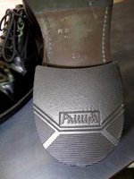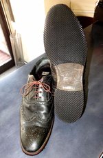 ■女性の靴に比べると革の厚みがあり、減るまでのマージンはかなり有利ですが、水気の吸上げと堅い床材と絨毯、カーペットの床などでのグリップの悪さもあり、最初から加工して履く方は昔に比べて多くなりました。とりわけ大理石やピータイル、前述したカーペットなどでの滑りやすさの中で一日過ごすと、からだの疲れ具合が全然違ってきます。,