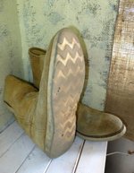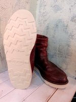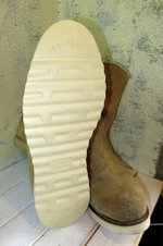 ■ゴムパテで成型してからアンバーという合成ゴムを接着してコーナーを手縫いしました。ソレルのゴムタグを切り取って接着。,