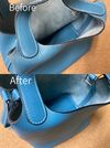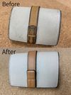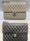 白色のレザーチェーンバックが汚れと塗料のスレが酷く使えなくなっていましたが、いくつかのリペア会社に見てもらいましたが、白色から白色へのリペアは難しい、シャネルのこの革製品は塗装が剥げる可能性が高いので無理と断られていましたが、こちらで綺麗に白色のバックが復活しました!金額も他社よりお安かったのですが、丁寧で迅速な対応でお願いして本当に良かったです