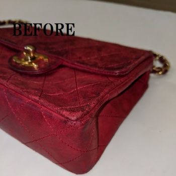 ■修理内容:角部分のスレ、キズのリペア 全体の黒ずみ、シミをクリーニング ショルダーチェーンの分解 全体を染め直しました