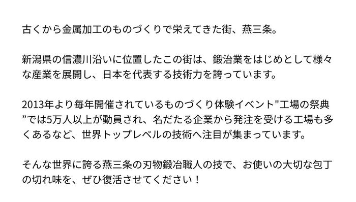 「燕三条」は世界最高レベルの鍛治職人たちが集まる街です。