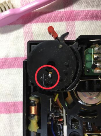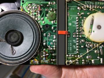 液漏れは基板と通して、FM/AM切替スイッチ内を破損させていました。スイッチ交換で対応できました。