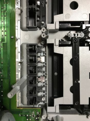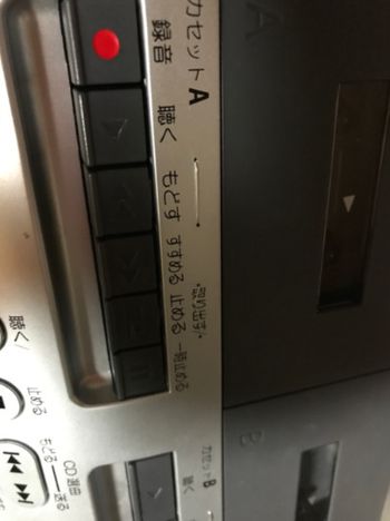 TOSHIBA CDラジカセ TY-CDW88の修理依頼です。カセット操作のボタンが陥没してしまったという症状です。分解してみるとボタンを支える部分が細く、ボタンを押す際に力が掛かって折れてしまった様です。アルミ板で補強して、ネジ止め部分を針金で押さえる様に加工しました。