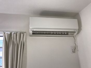 エアコン取り付け後の写真です。穴あけもスムーズに行うことができ、室内から配管が見えないようにきれいに取り付けを行うことができました。